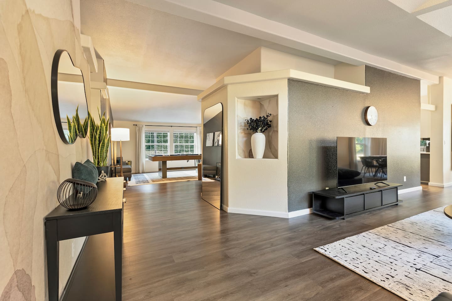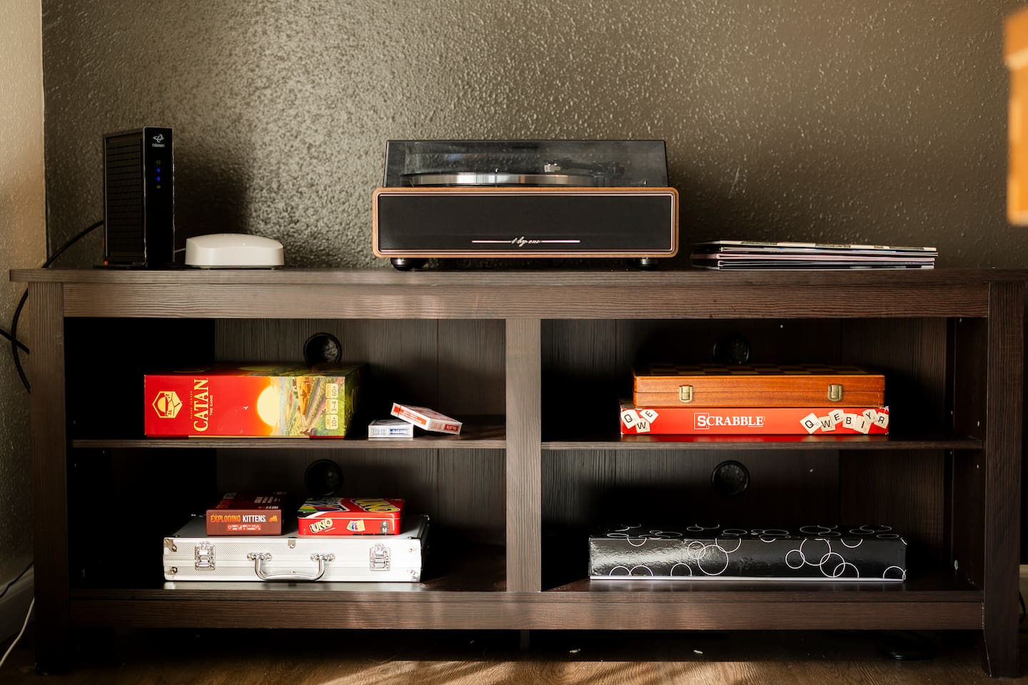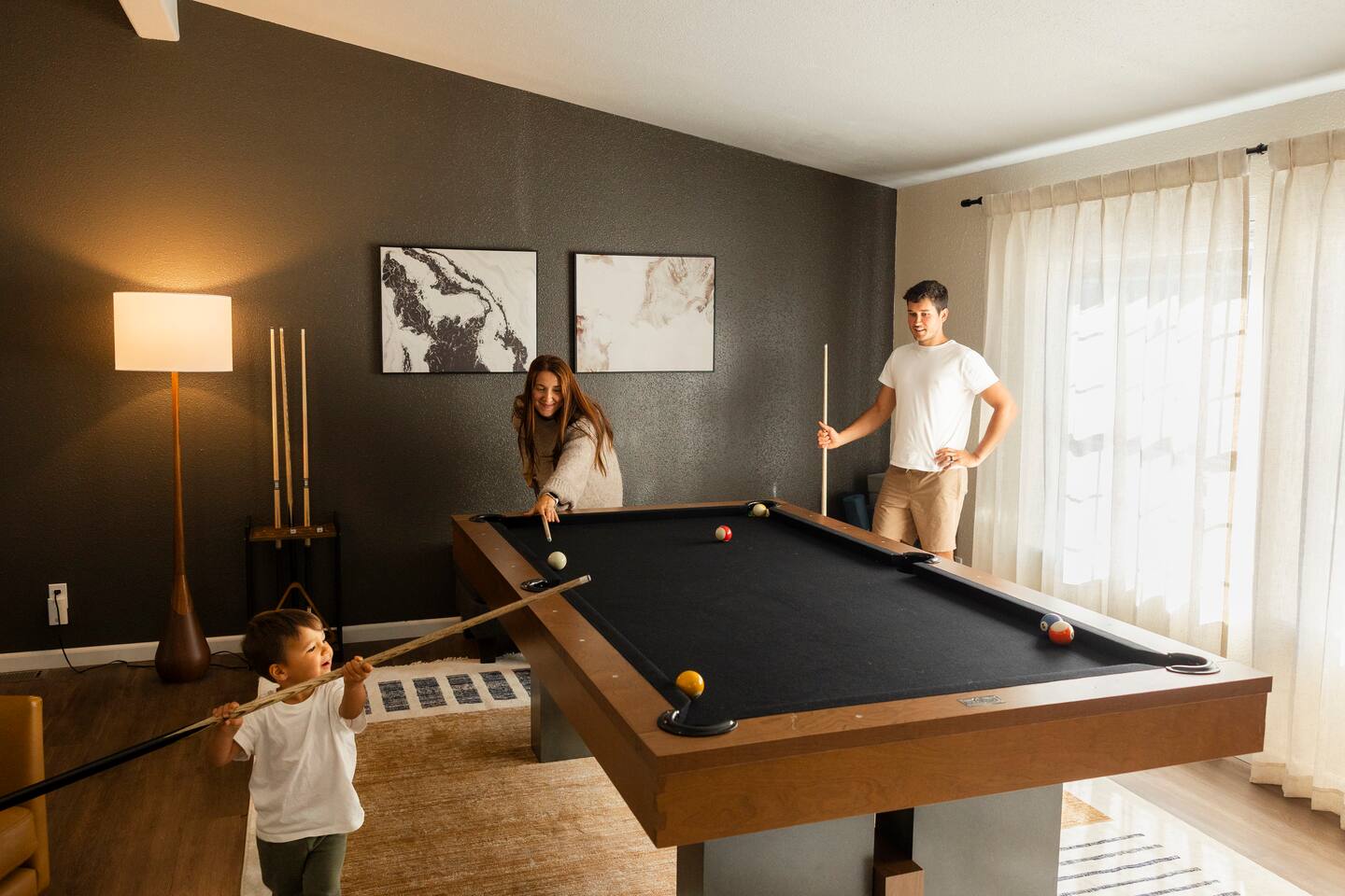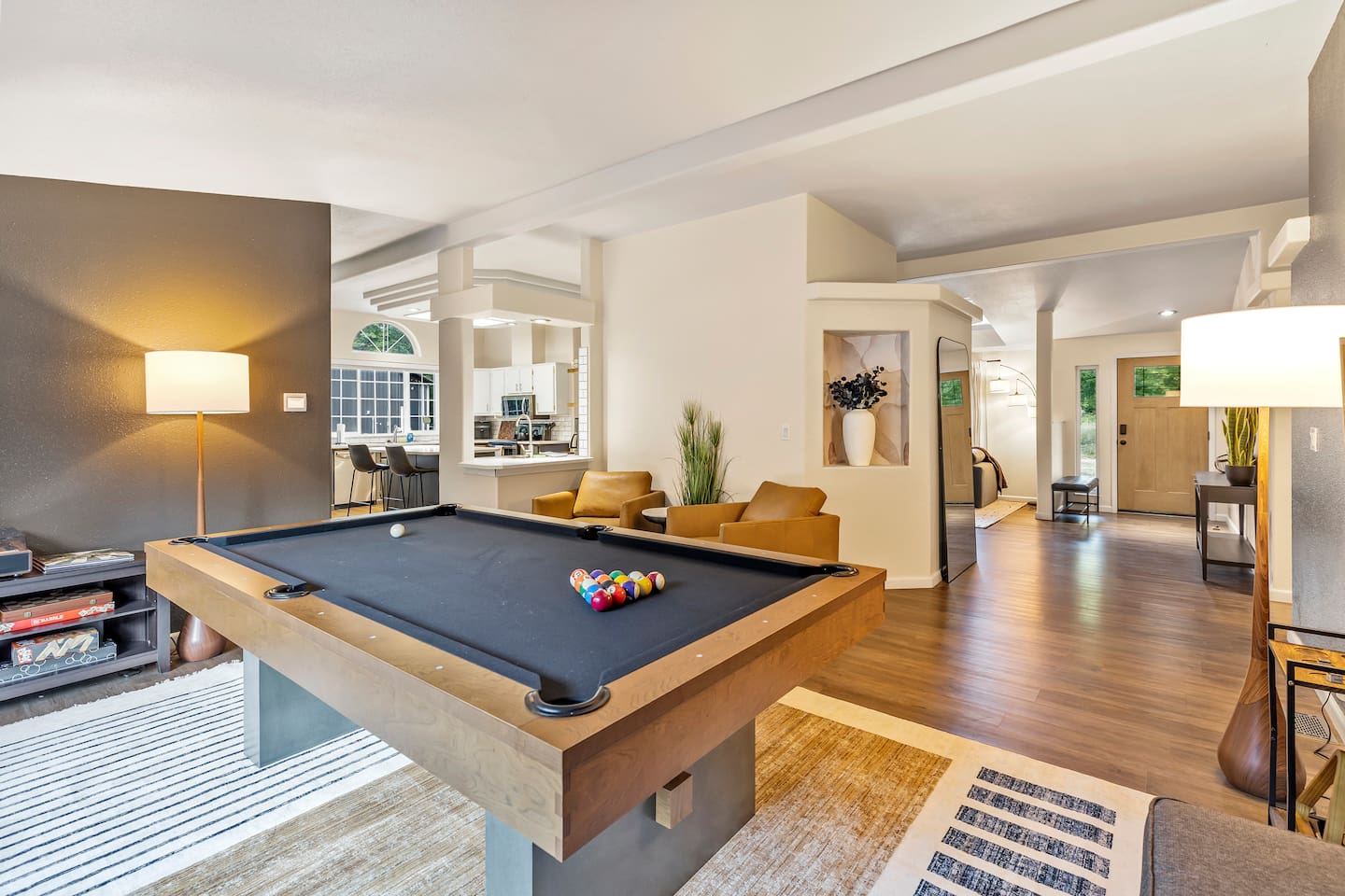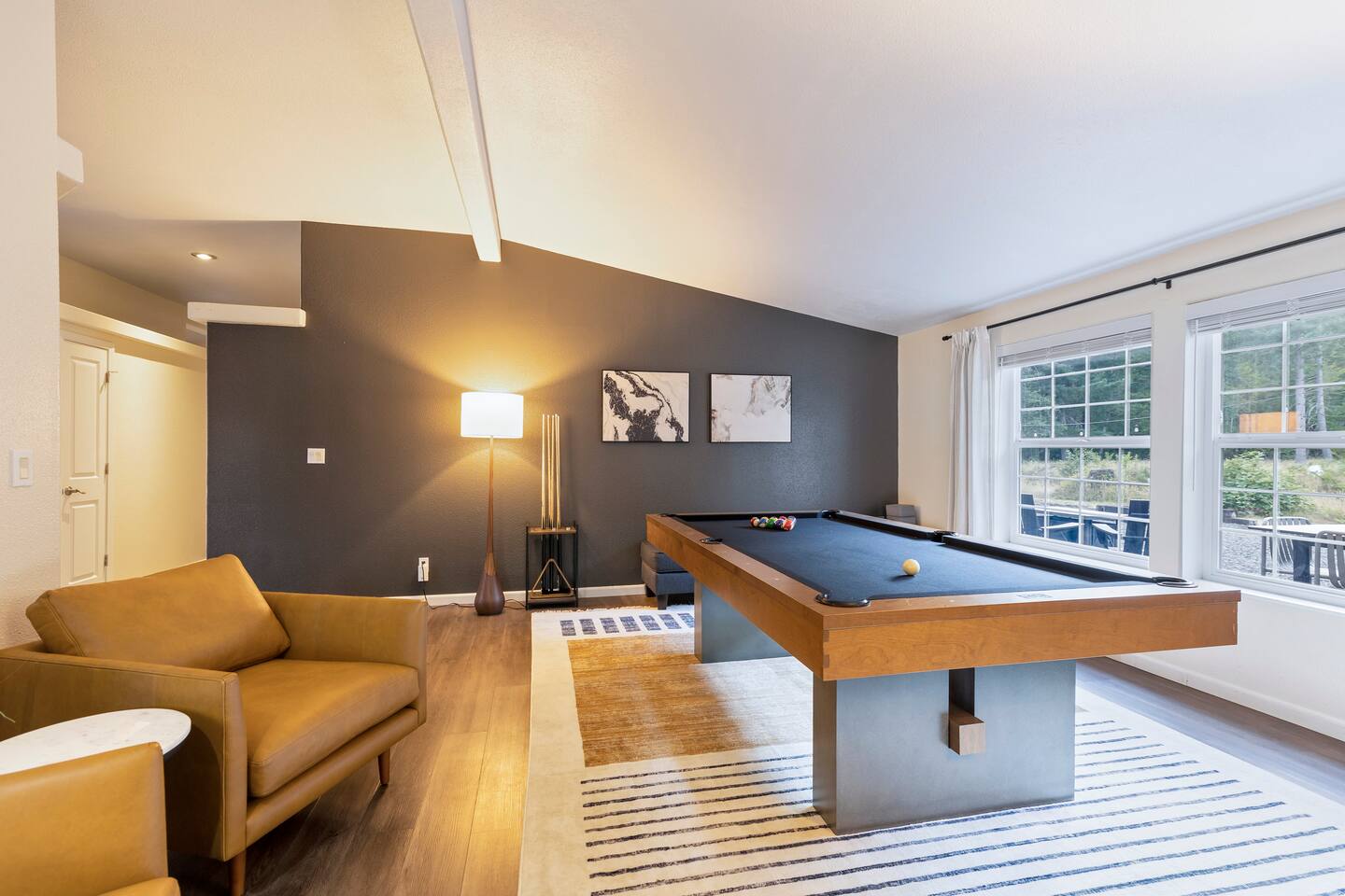 Butter Peak Lodge offers a spacious, well-appointed retreat where you can truly unwind. Relax in the cozy living room with a large smart TV, play billiards in the game room, or spin your favorite vinyl on the record player. The home features three comfortable bedrooms, each with its own smart TV. Plus a quiet study with a Murphy bed and desk for work or reading. Ideal for the modern adventurer seeking comfort and privacy. The fully equipped kitchen includes a breakfast nook and opens into a welcoming dining room, perfect for shared meals. You'll find two full bathrooms (one with a soaking tub in the primary bedroom) and a convenient half bath. Whether you're gathering with friends or getting away with family, there’s room for everyone to spread out and enjoy. Guests will also enjoy thoughtful amenities like high-speed WiFi (please note: cell service is limited), a selection of board games, and three yoga mats with blocks.