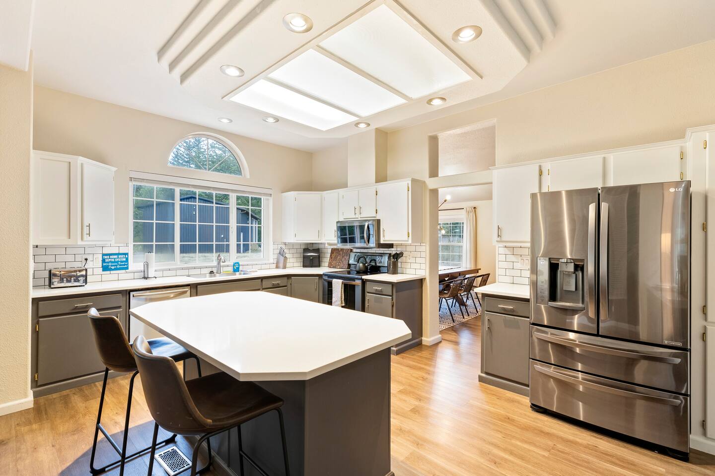 The house features a gravel driveway—motorcyclists should use caution when arriving. Cell phone service can be limited in the area due to the remote location—but don’t worry, the house is equipped with fast, reliable WiFi to keep you connected during your stay.